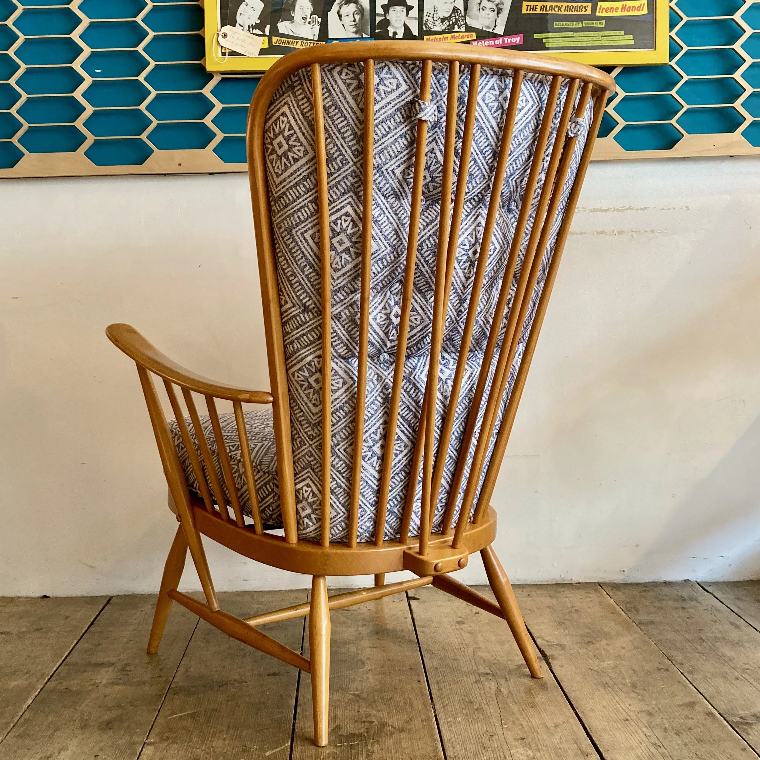 Featuring Ercol’s iconic solid beech frame and supportive high back, this piece offers both style and comfort—perfect for a living room, reading corner, or bedroom.