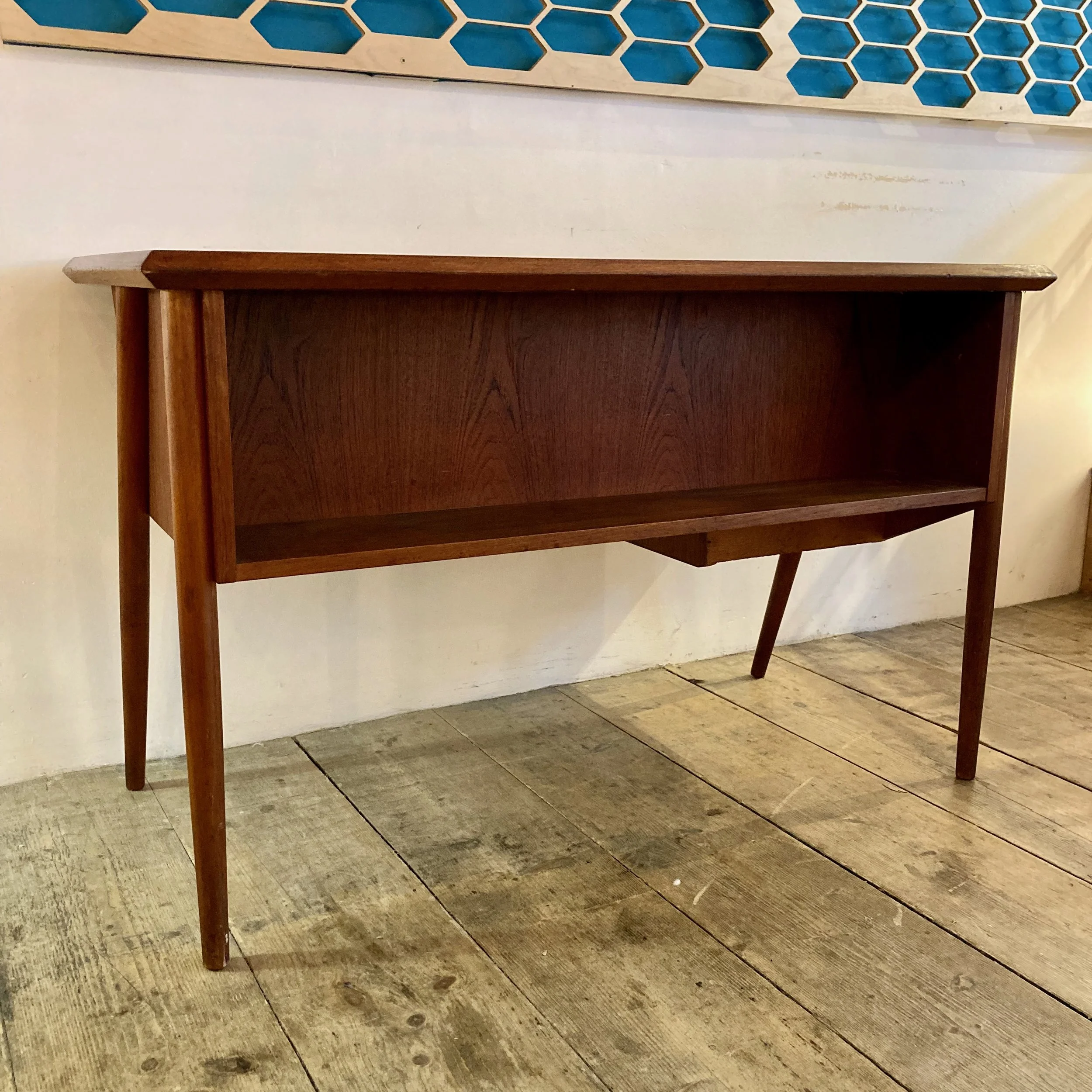 A beautifully crafted mid-century Danish teak desk, designed by the renowned Gunnar Nielsen Tibergaard in the 1960s. This elegant piece embodies the timeless simplicity and functionality that Danish modern furniture is celebrated for.