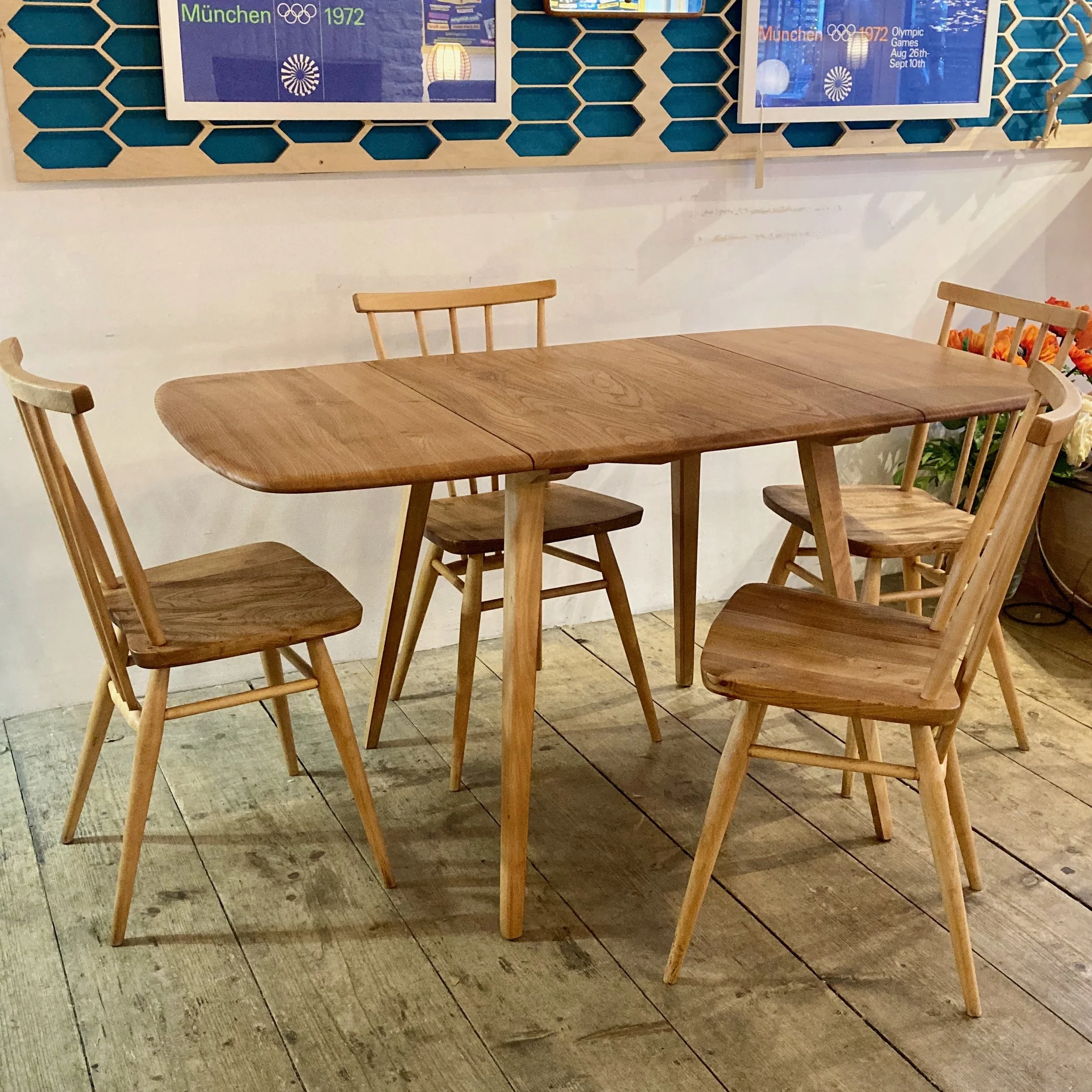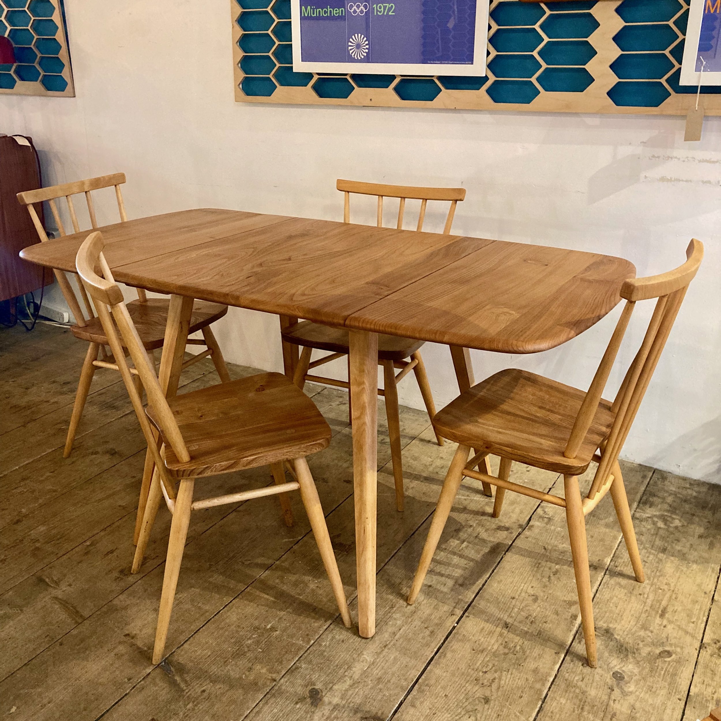 A beautifully restored 1960s Ercol Windsor drop-leaf dining table, showcasing the classic craftsmanship that makes vintage Ercol so sought after. Featuring a beech base and solid elm top, this versatile table comfortably seats up to six when extended. A timeless piece of mid-century British design, fully restored and ready for its next home.
