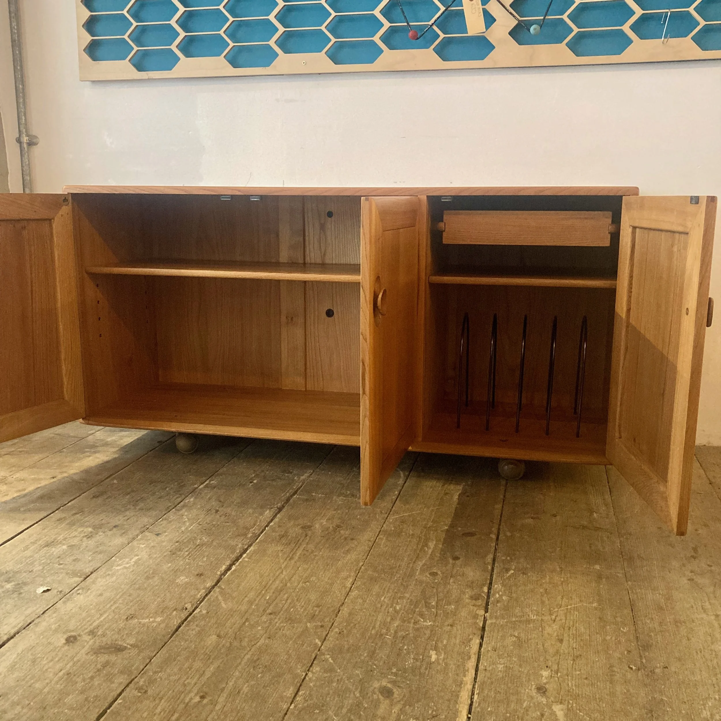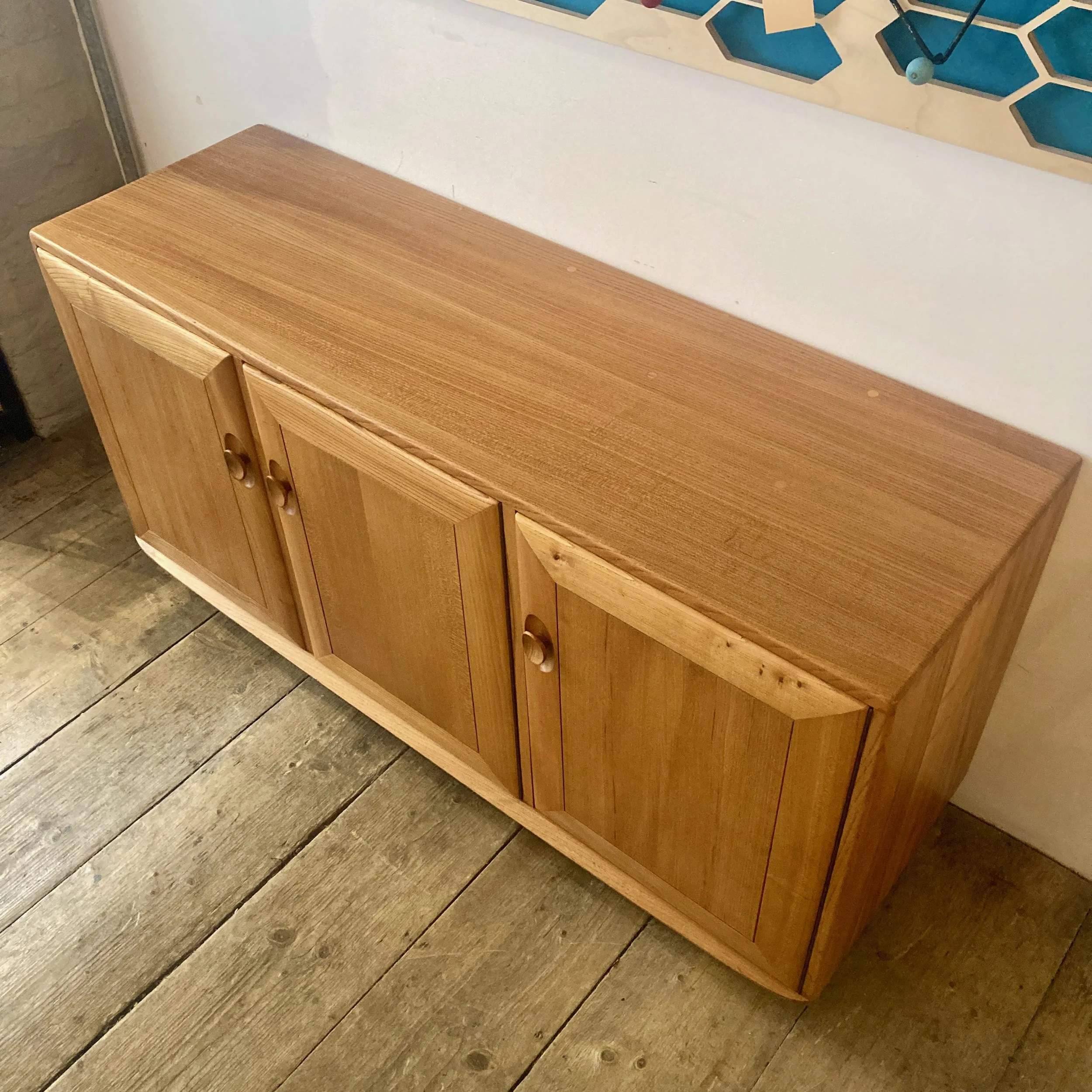 A beautifully restored elm Ercol Model 803 sideboard dating from the 1980s, showcasing the brand’s timeless British design and exceptional craftsmanship. Made from solid elm with Ercol’s signature clean lines and warm grain, this vintage piece has been carefully refurbished to enhance its natural character while ensuring it is ready for modern living.