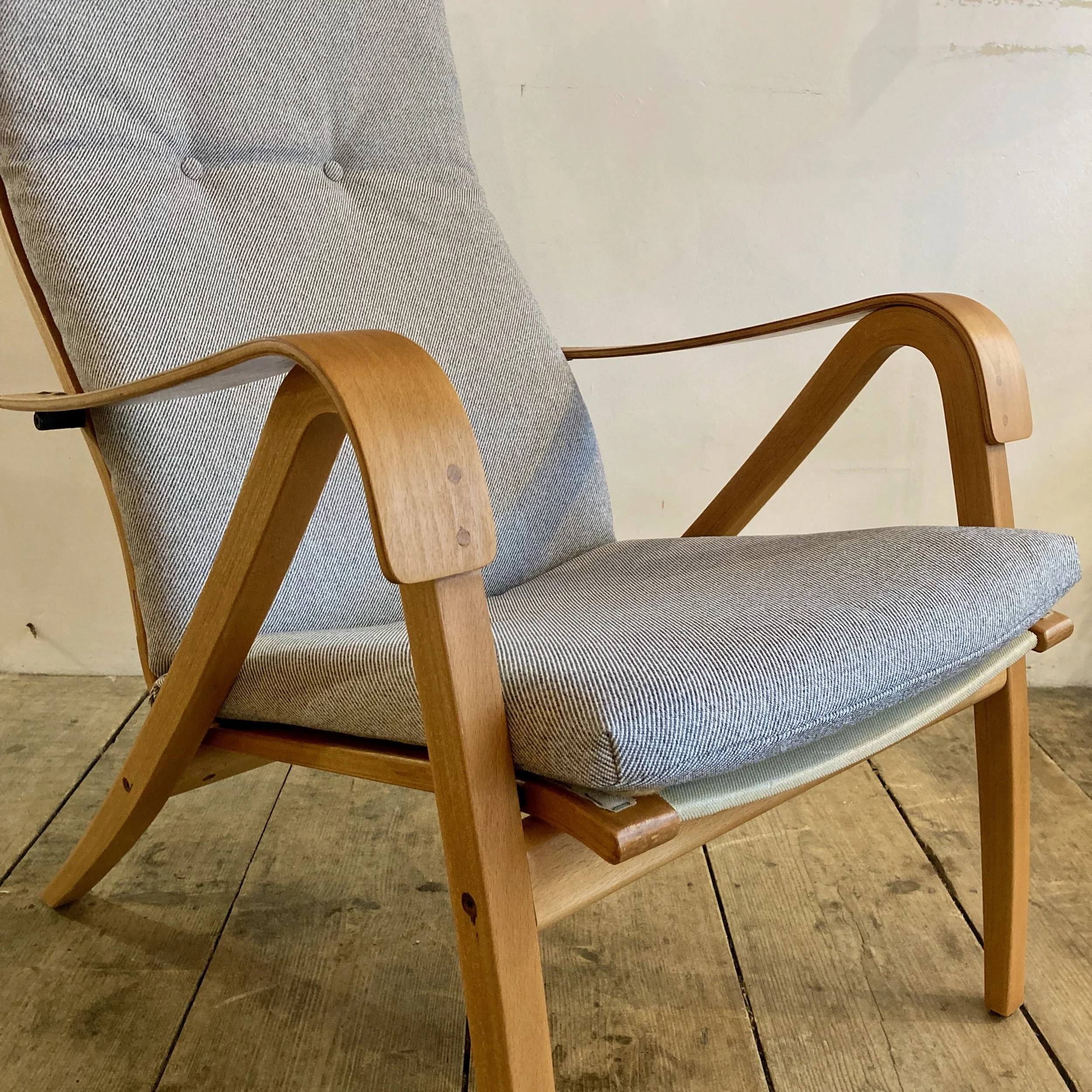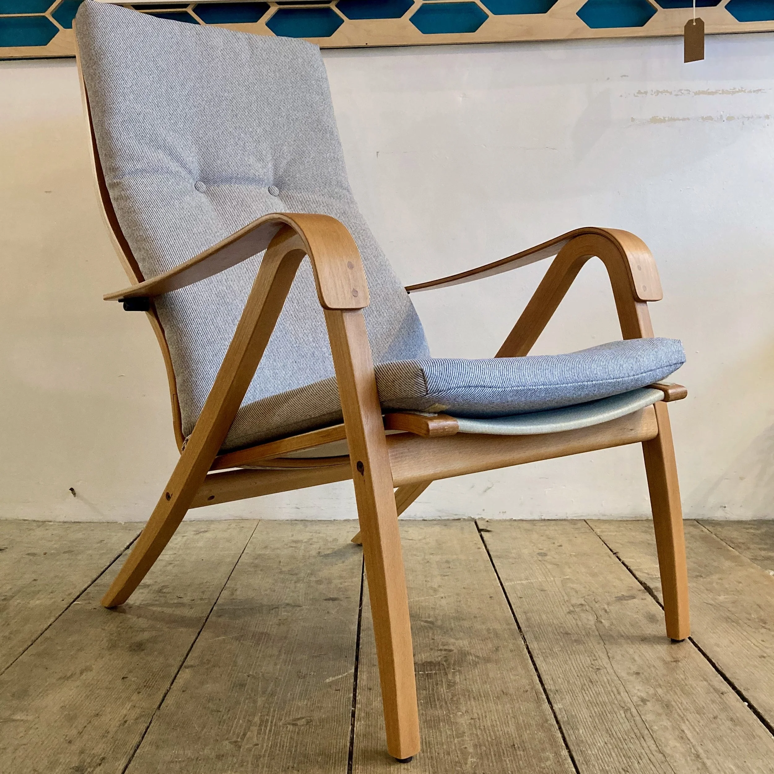 Expertly restored and freshly reupholstered in a soft grey fabric, this vintage designer chair blends comfort, craftsmanship and character—perfect for anyone seeking vintage IKEA design or a statement piece for a modern interior.