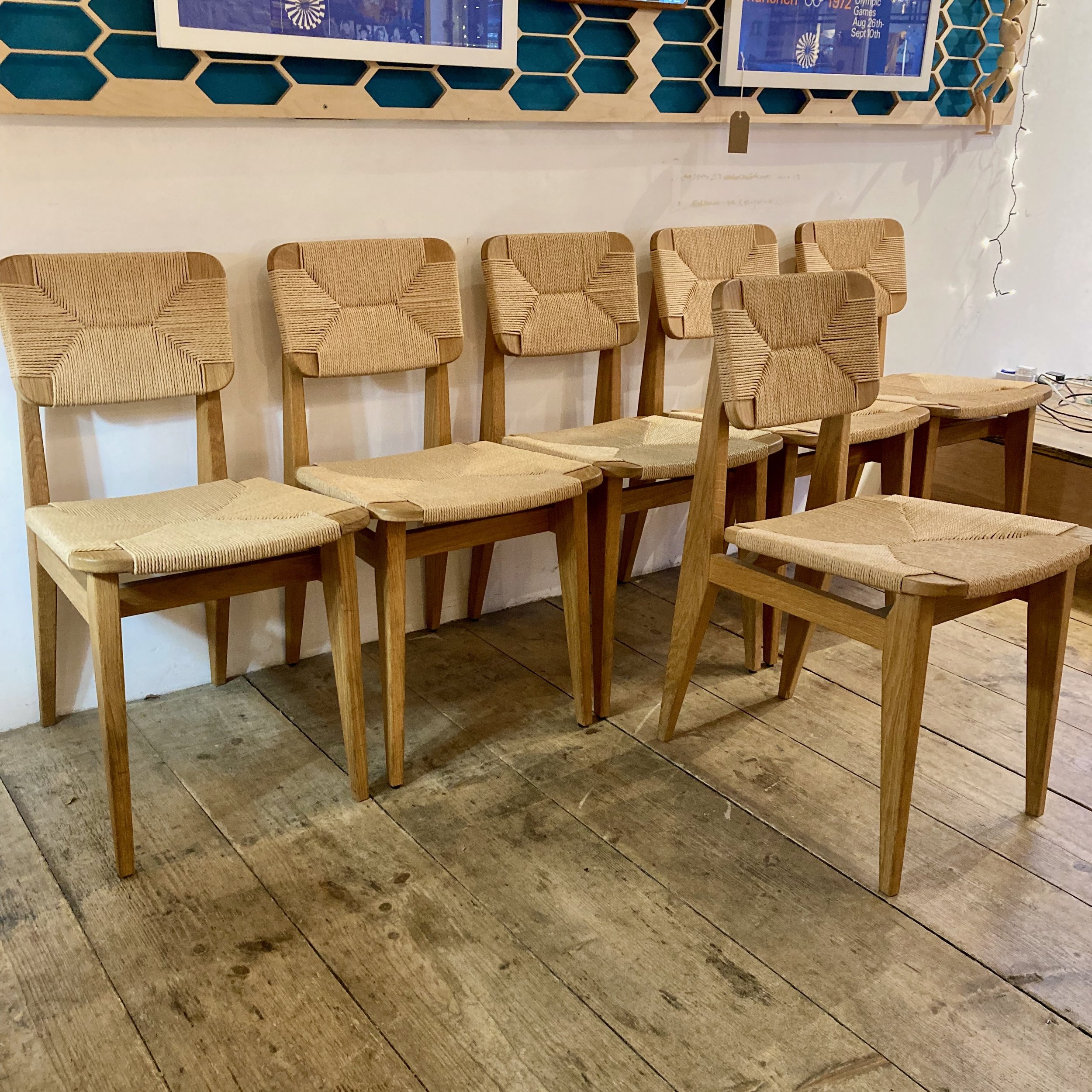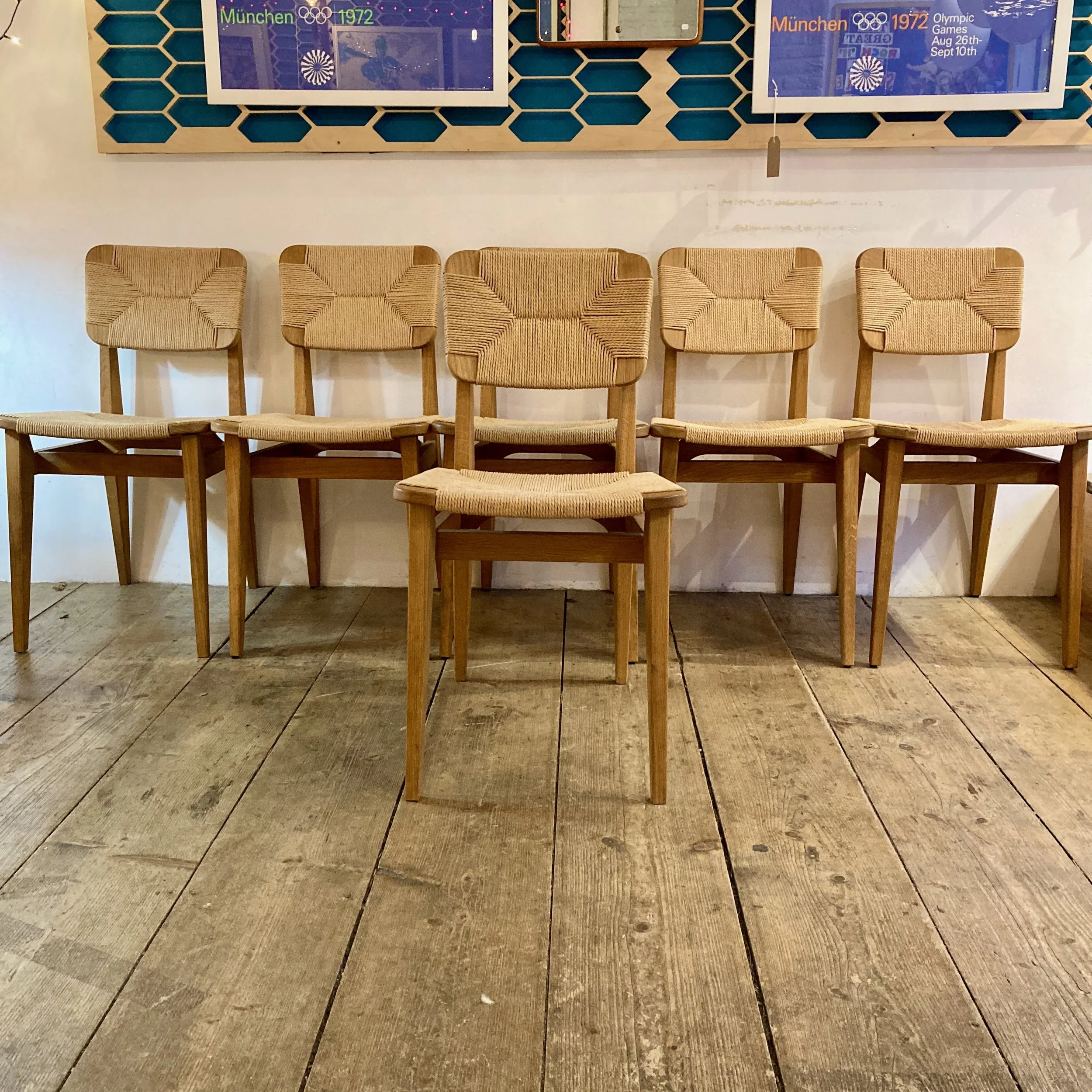 A stylish set of six Gubi C-Chairs, expertly crafted using traditional joinery techniques and plantation teak. Designed for both indoor and outdoor use, these chairs offer exceptional versatility, durability and timeless Scandinavian style.