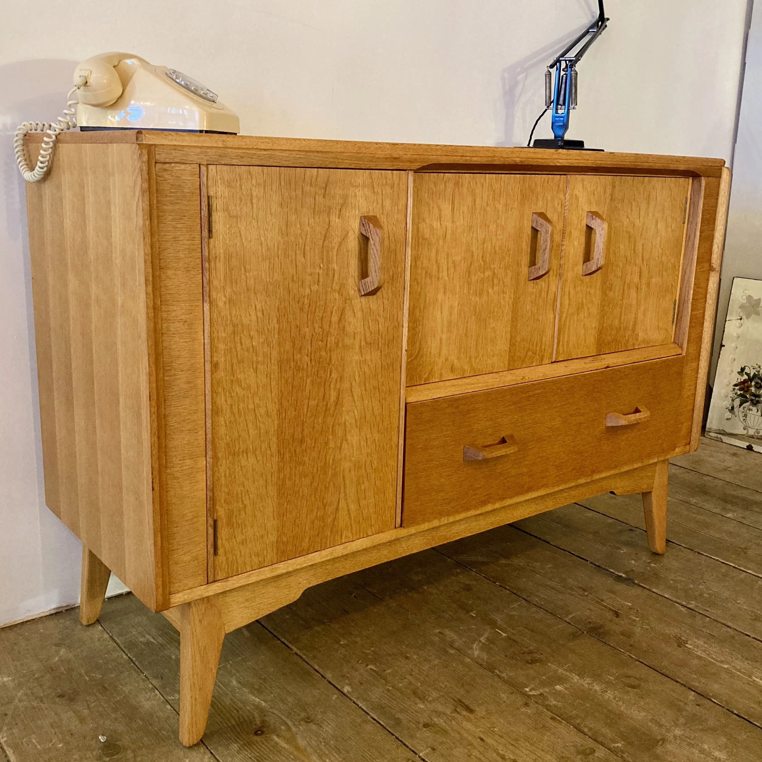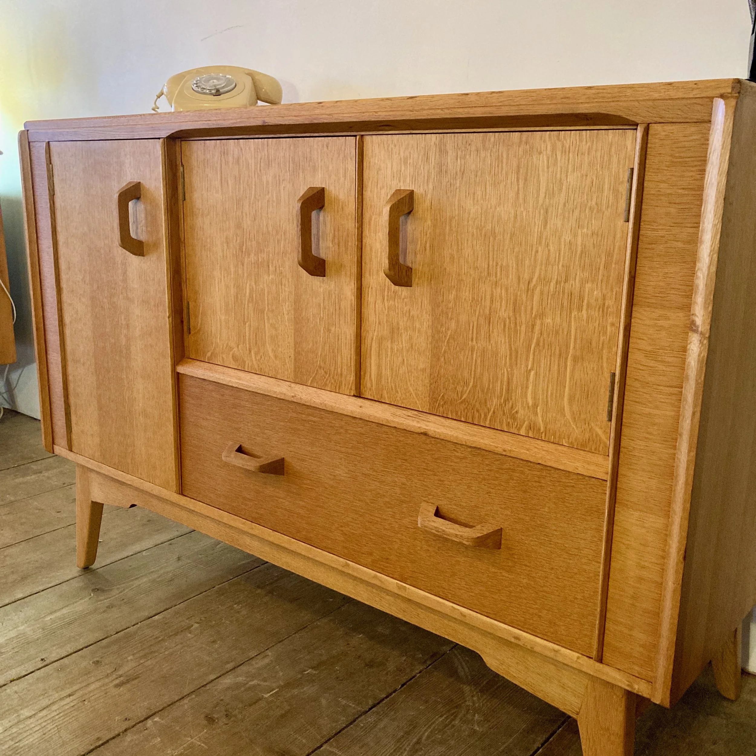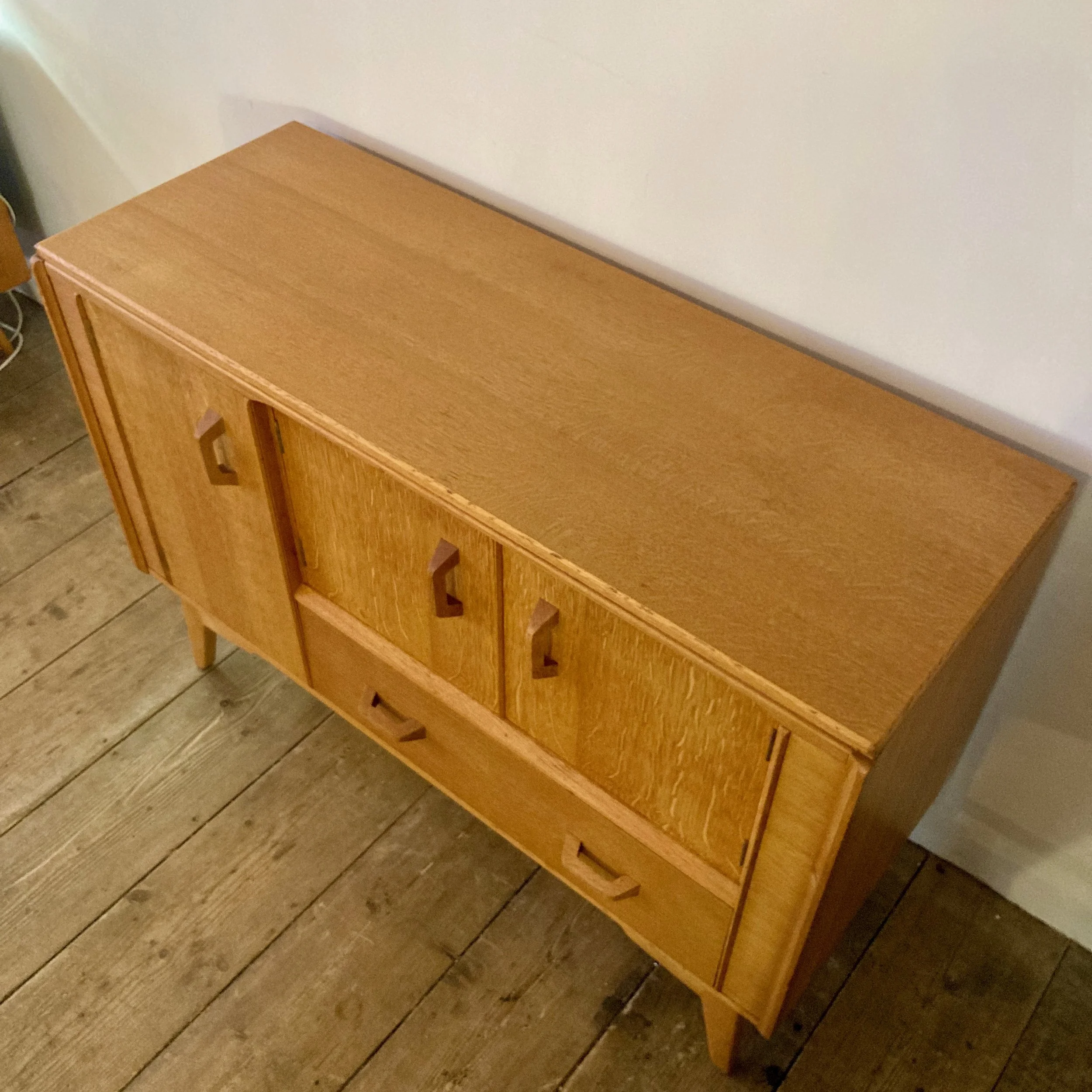 The warm oak grain, compact proportions and elegant mid-century lines make it a versatile addition to living rooms, dining spaces or hallways. Practical yet full of character, it embodies the quality and thoughtful design of G Plan’s earliest furniture.