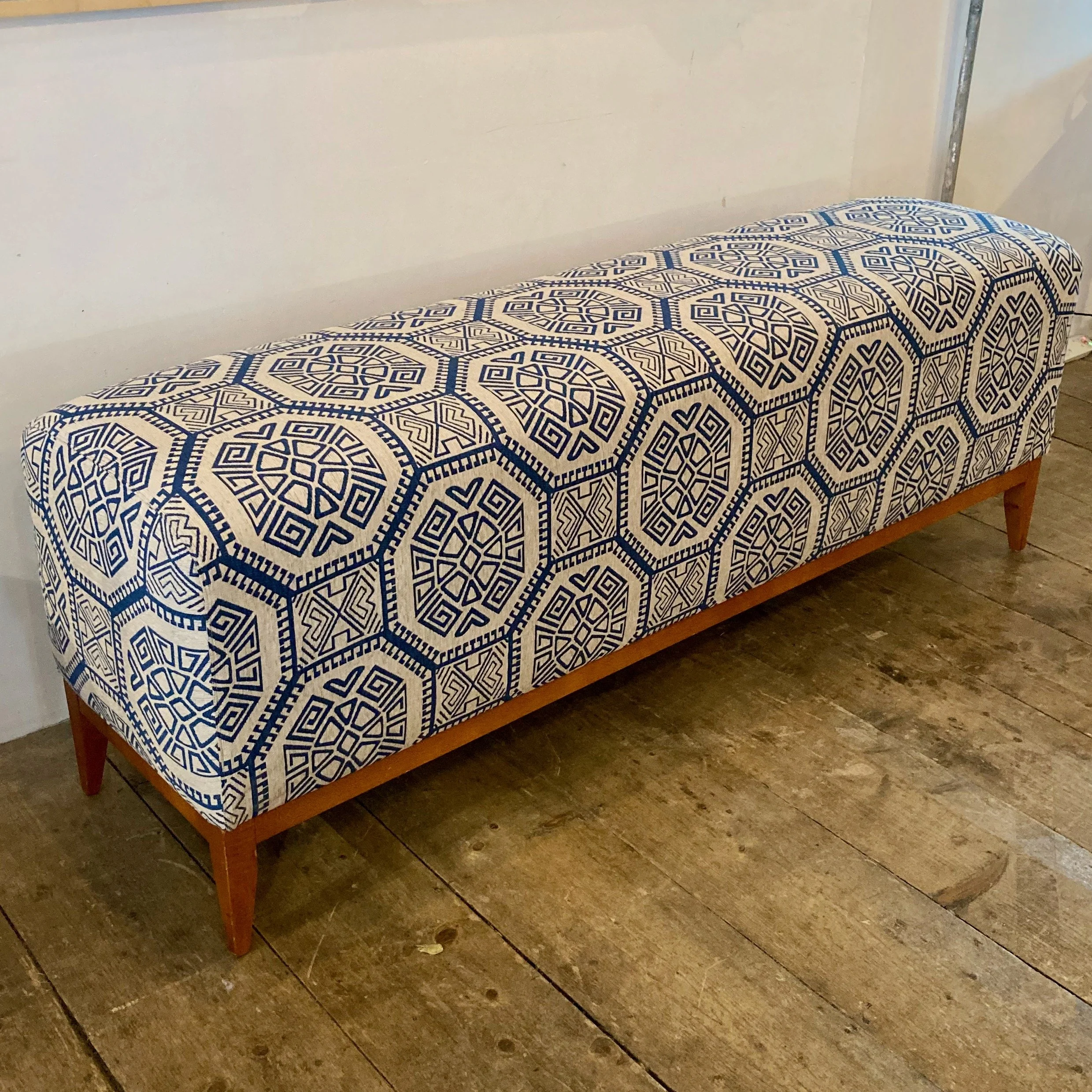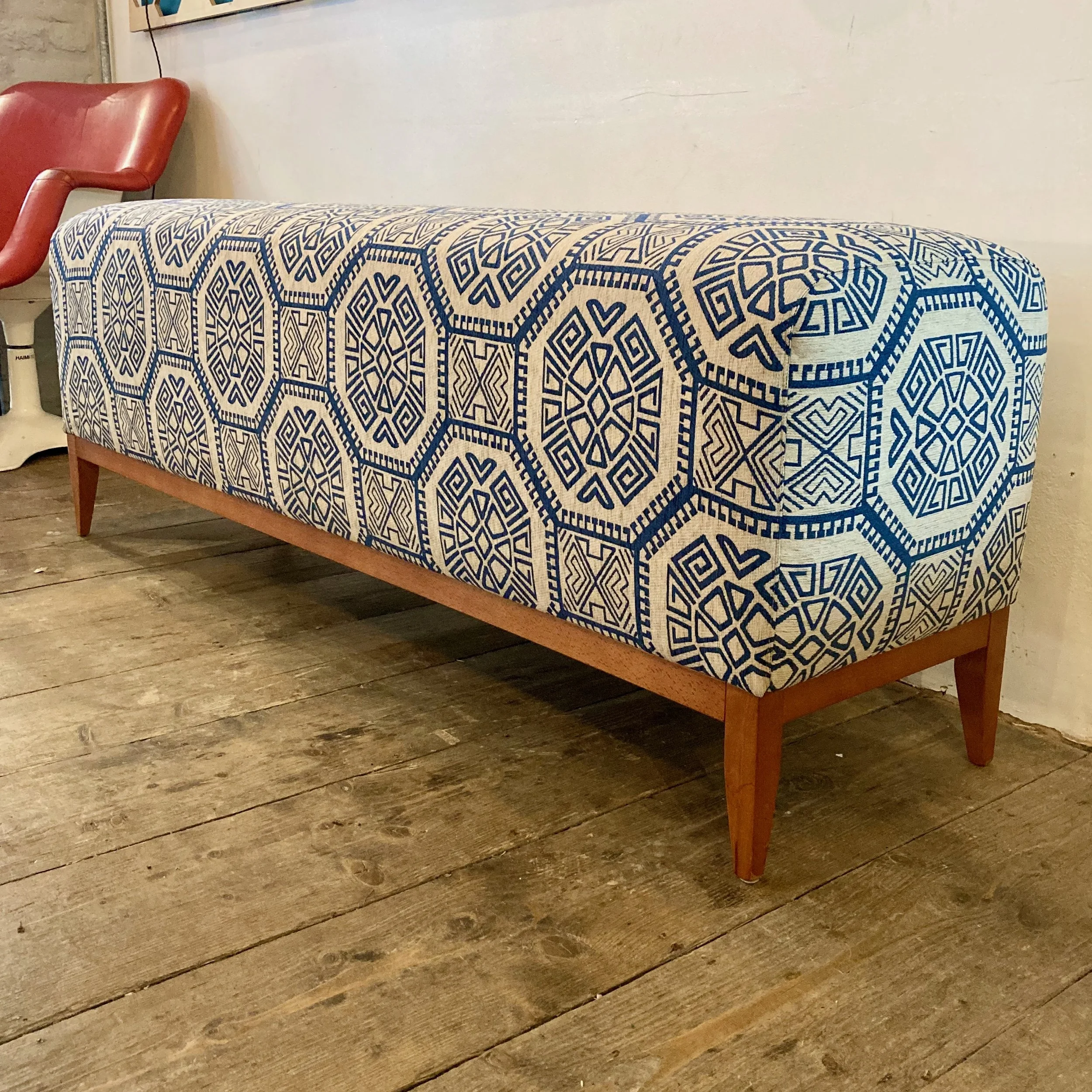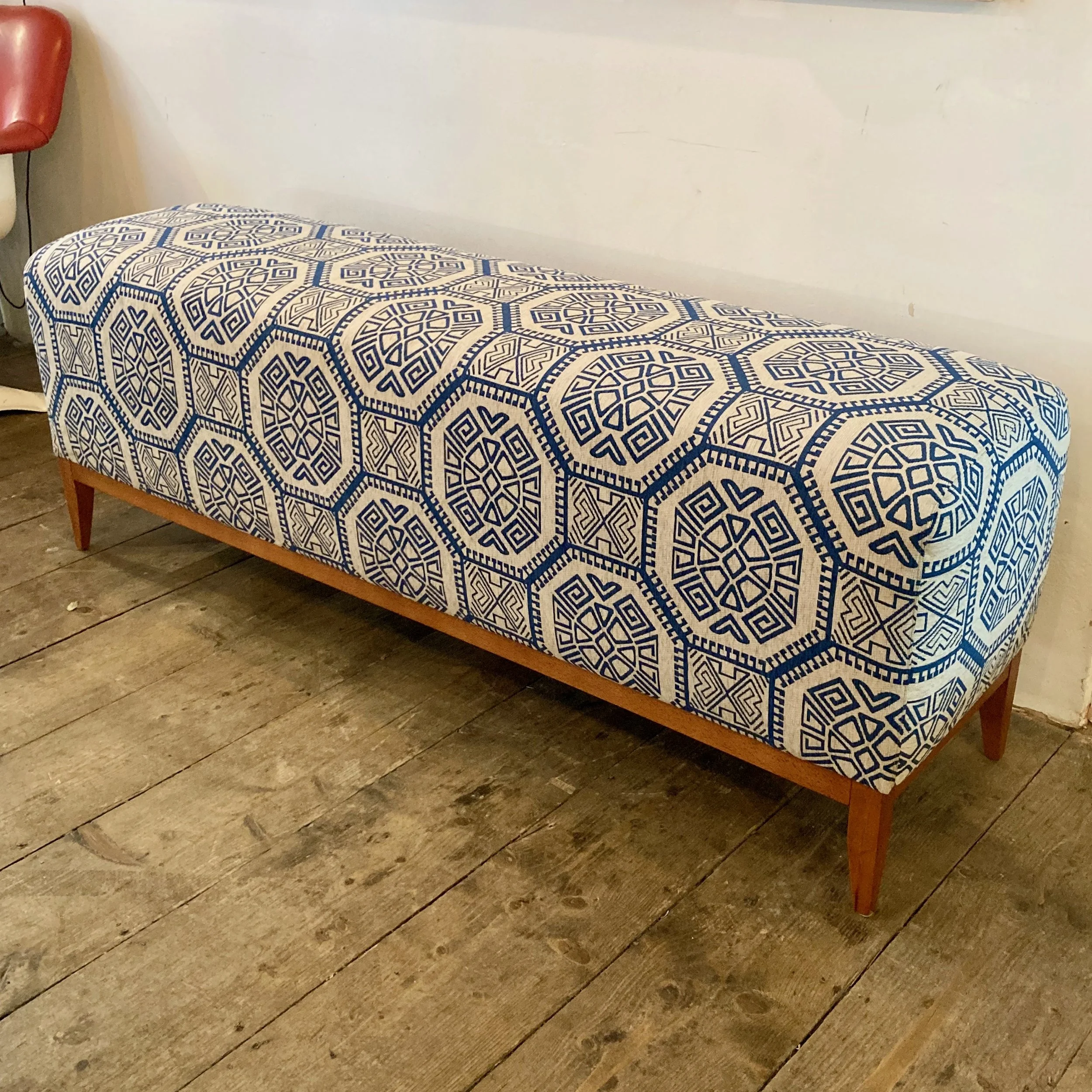 A sleek modern rectangular bench, beautifully reupholstered to give it a fresh, contemporary feel. With its clean lines and generous proportions, this versatile piece works effortlessly across a range of interiors.