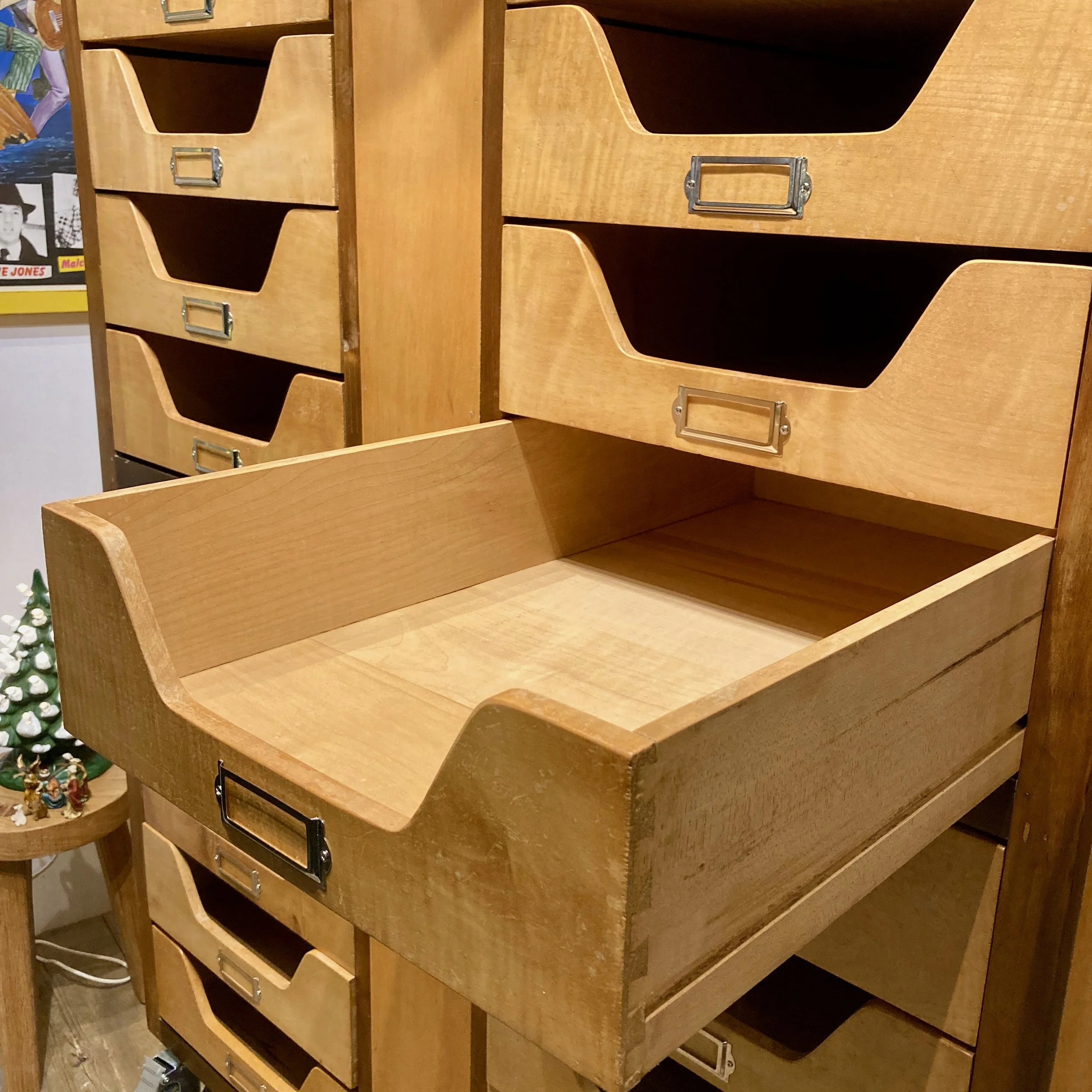 Each drawer features a new label plate, ideal for categorising documents or collections, while the addition of casters provides easy movement and positioning within a room. A superb, statement storage solution with bags of vintage appeal.